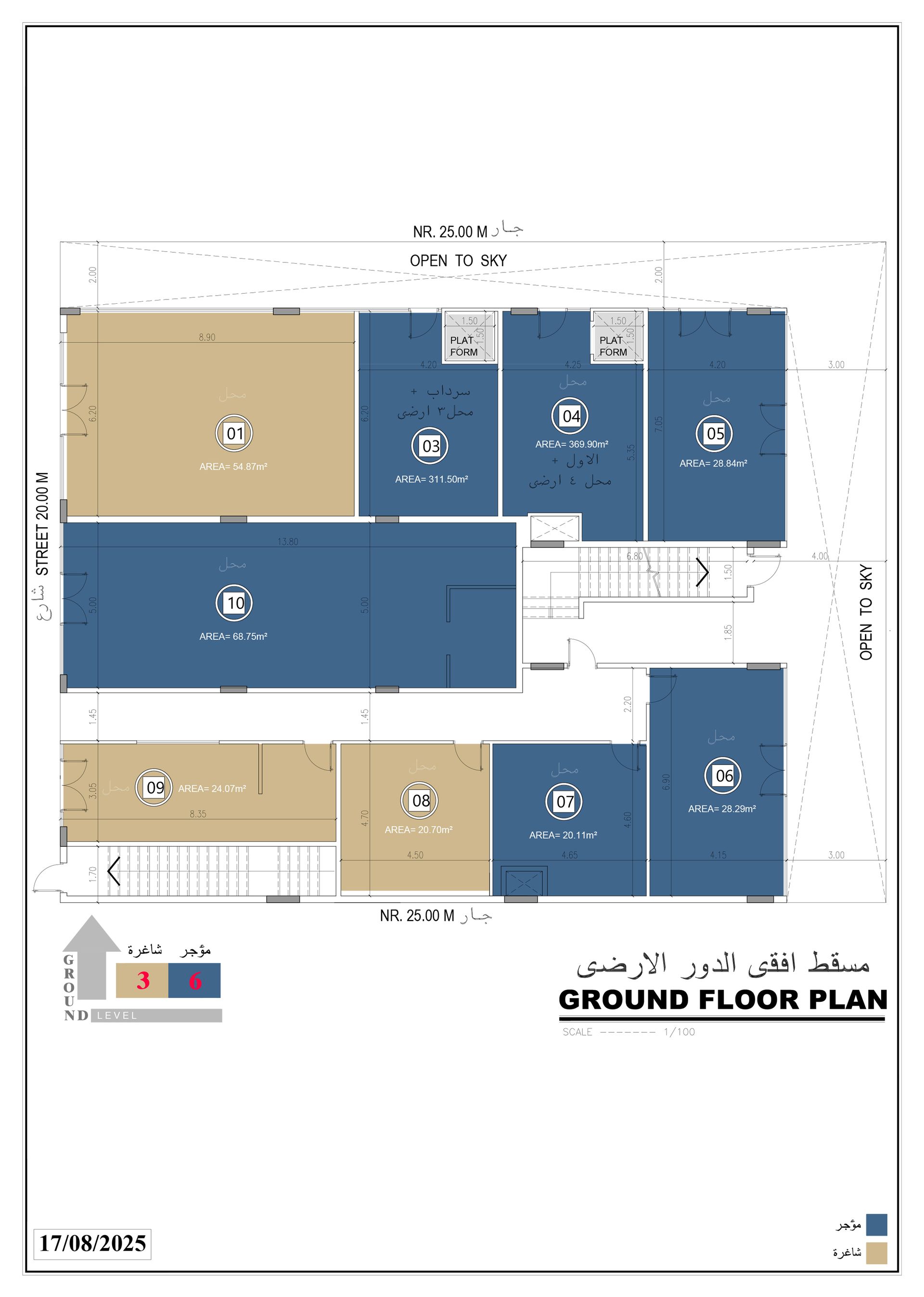 | 10 | محل | الأرضي | 68.75 | مؤجر |