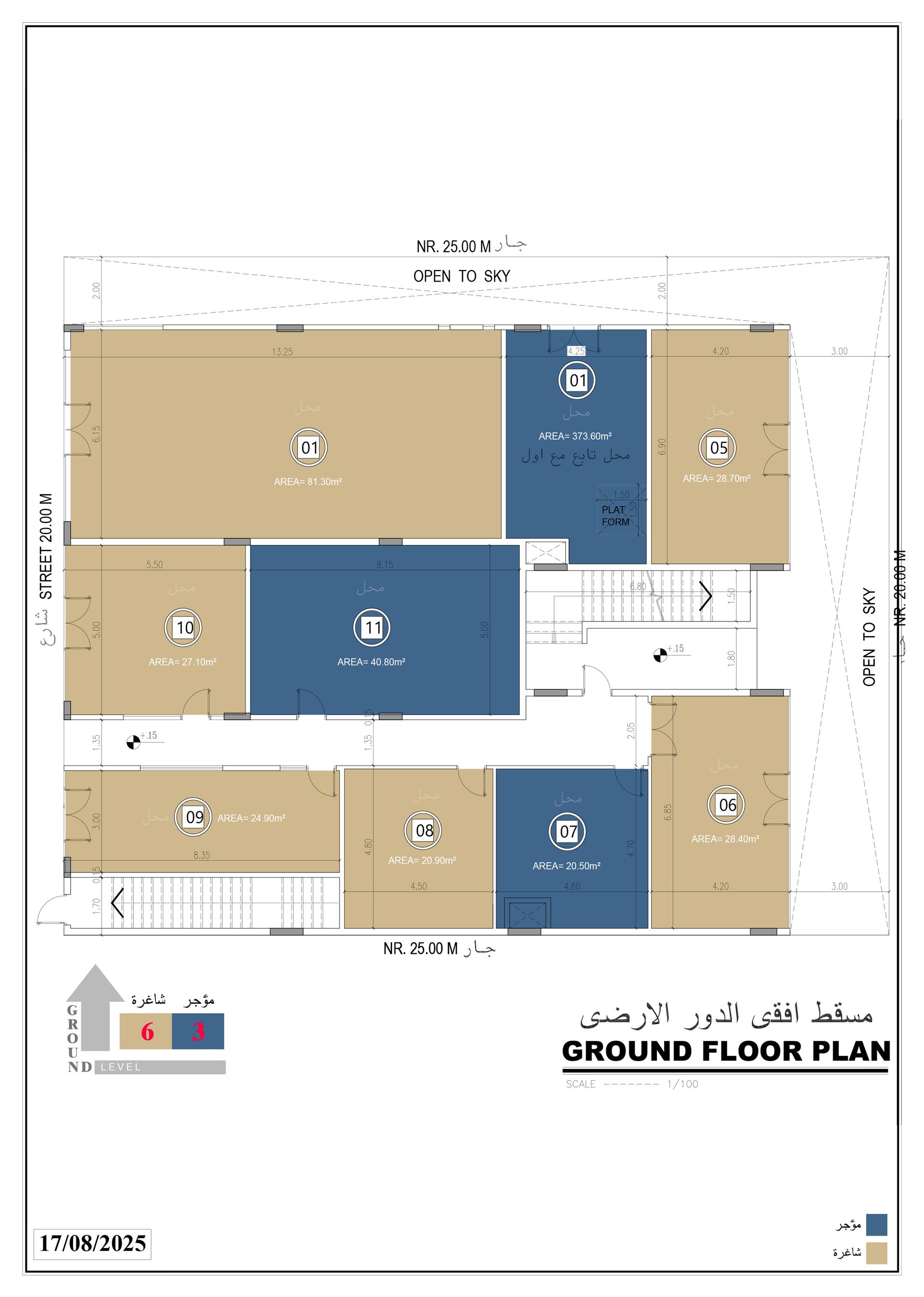 | 7 | محل | الأرضي | 20.5 | للإيجار |